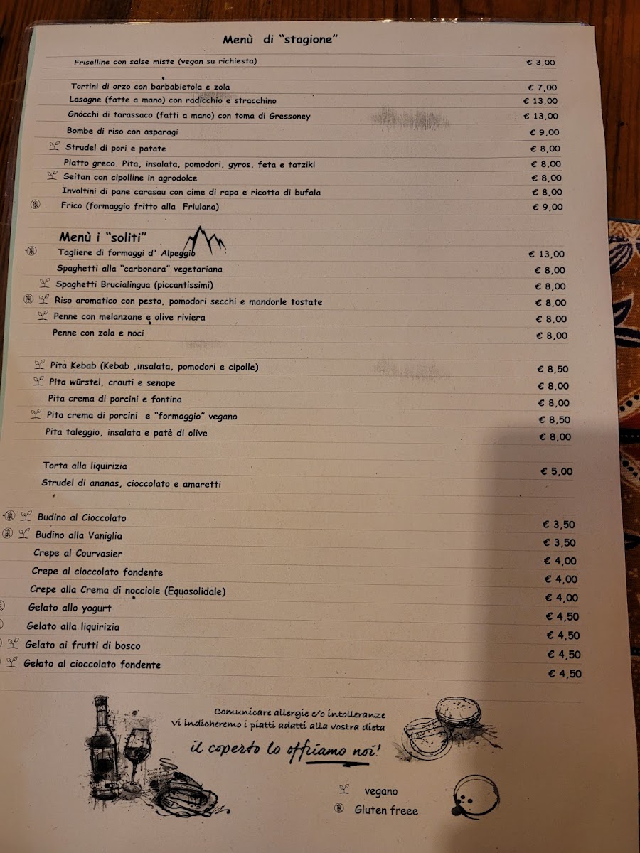 Mandala 2.0 , Osteria vegetariana dal 1991 Menu